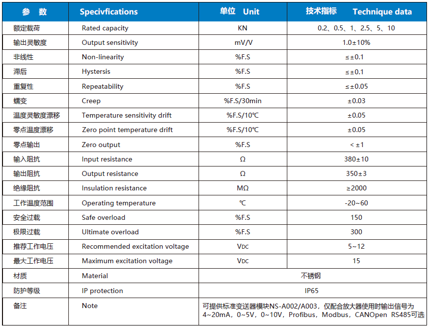 NS-TH4 系列稱重傳感器采用懸臂剪切結構;