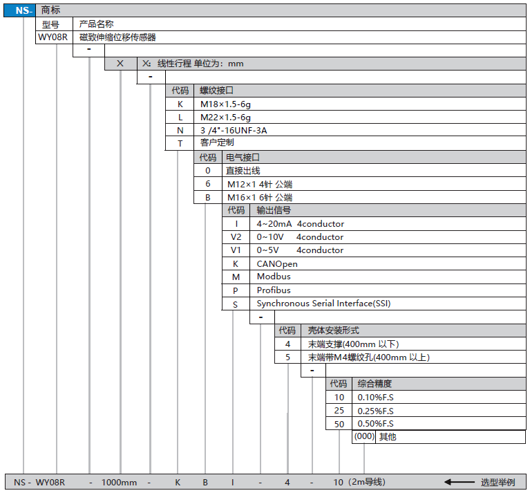 NS-WY08G系列 磁致伸縮位移傳感器